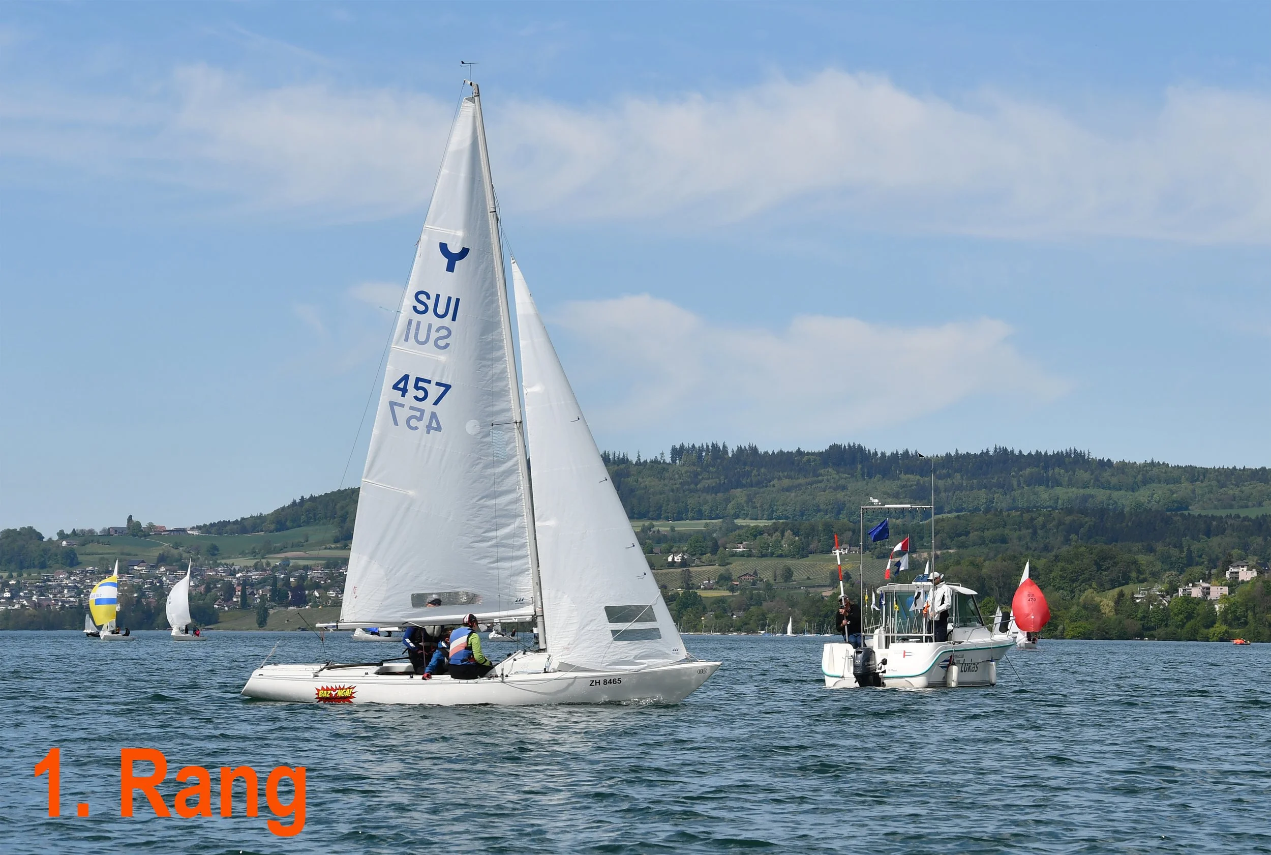 /Das wunderbare Wetter bot den 12 angereisten Teams eine tolle Regatta. Es wurden sechs Läufe gesegelt bei 2-3 Beaufort aus Nordwesten. Dank einer sehr konstanten Leistung holten sich das Portweinfass, der Wanderpokal der Port-o-Böju Regatta, das Team Thomas Kristiansen, Marc Bornand und Sandra Schär (SCRG). Dank Laufsieg im letzen Lauf platziert sich das Heimteam Thomas Huber, Christian Frey und Marcel Graber (SCH) auf Rang 2 vor Serafin Bäbler, Philipp Siegfried und Ulrich Vogler (SCRG).